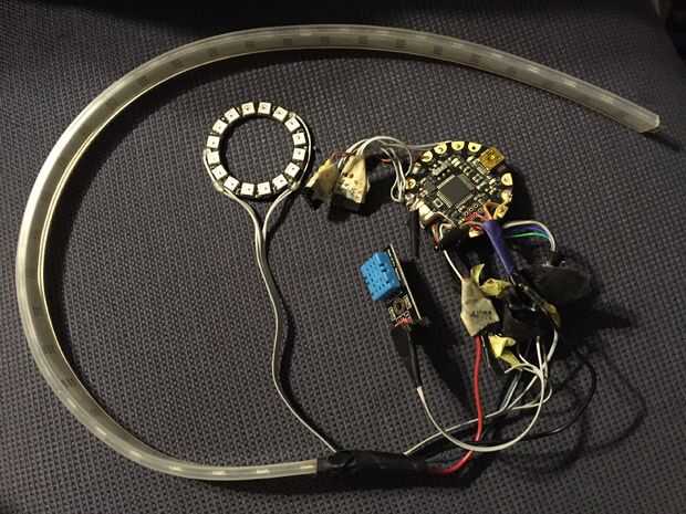 Tuve algunos segmentos de la tira de neopixel y neopixel anillos para hacer un termómetro mirando el programa de instalación.