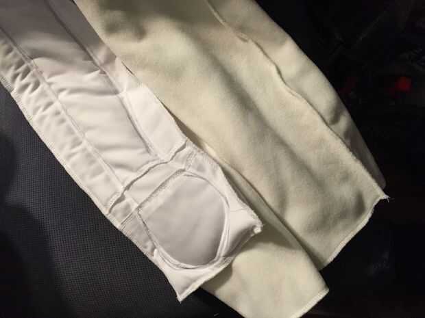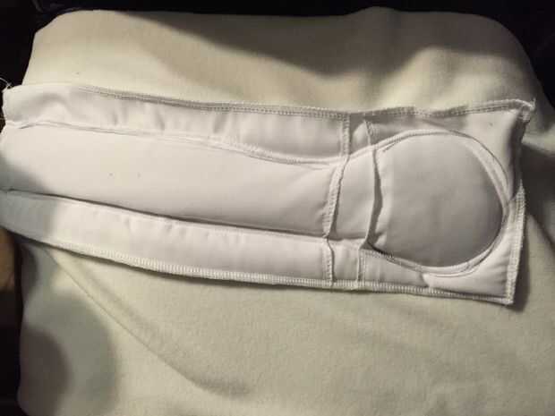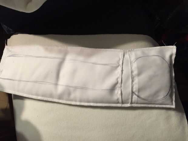 He creado algo parecido a una almohada con tela incorporados una capa de guata de relleno. Una capa adicional de tejido exterior forma un canal y un bolsillo para la franja de neopixel y anillo de neopixel.
