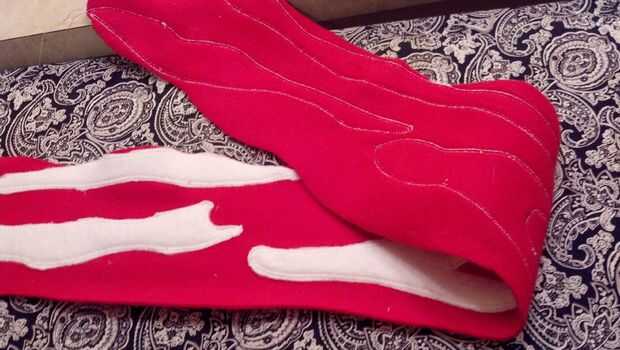 Delinear todo el blanco paño grueso y suave con la puntada de apliques. Toma un tiempo bastante largo, pero será mejor que sólo la cinta y dar su bufanda de tocino un aspecto más agradable, en mi opinión.