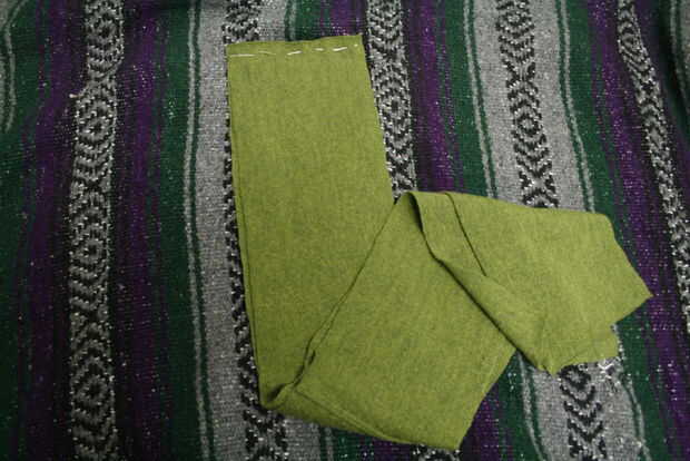 Ahora, prender juntos los dos rectángulos finos encarando los derechos.
