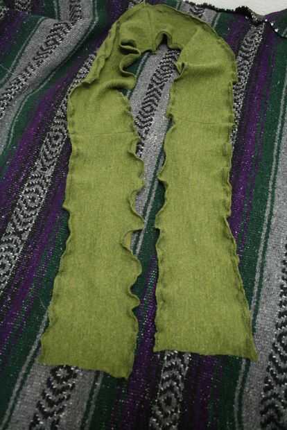 A una puntada de zig-zag su máquina de coser y coser todo el perímetro de la bufanda, estirando el tejido a coser.