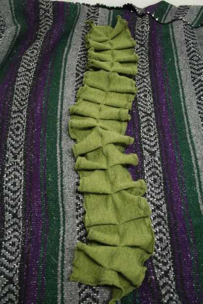 -Podría utilizar hilo para coser la línea por la mitad de su bufanda para que sea más elástico.