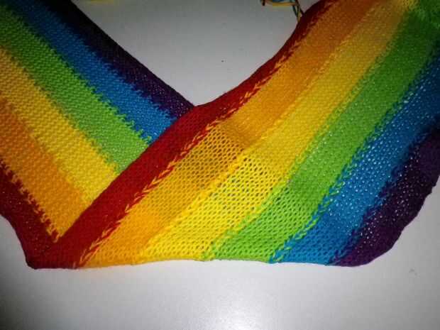 ¿La primera parte de este desafío cómo tejer una bufanda de arco iris? Una vez más había no hay patrones para el tipo de bufanda de arco iris que quería crear en Internet.