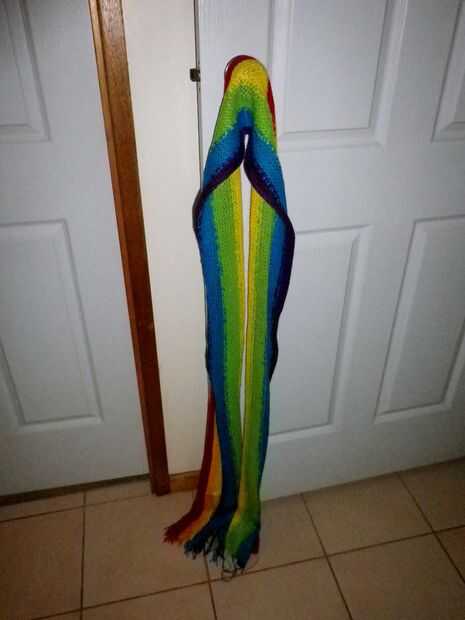 ** La longitud de mi bufanda era aproximadamente 1,5 metros, que honestamente pudo haber sido un poco demasiado largos pero quería decir que podría envolver alrededor de su cuello 3 veces.