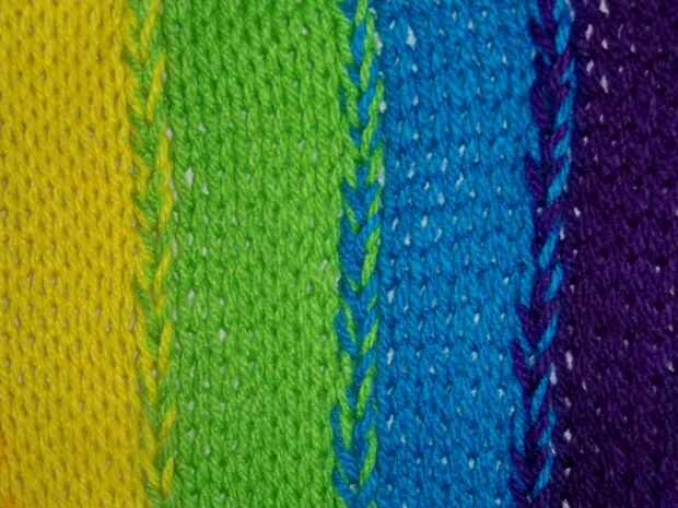 Jersey * hasta la longitud deseada **, tejer o trata los colores juntos donde se unen en cada fila.