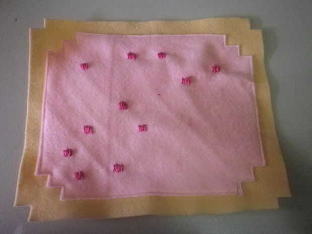 También usé mi máquina de coser para coser juntas las capas de color de rosa y beiges pero esto se puede hacer a mano.