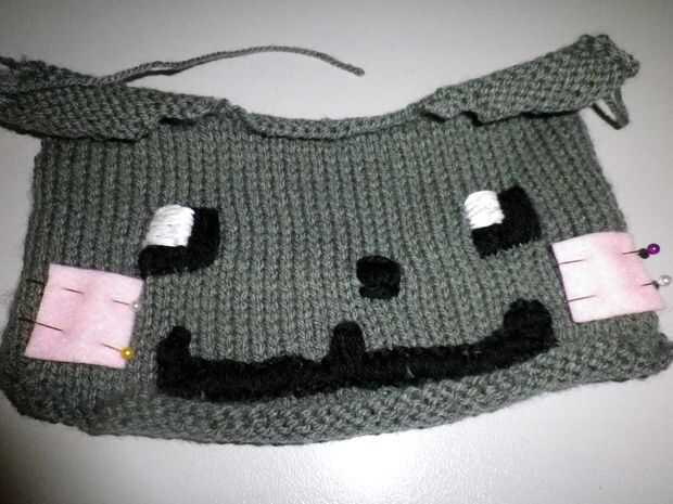 A continuación cortar el fieltro a la forma para el cuerpo y había bordada el punto y la cara en el gato.