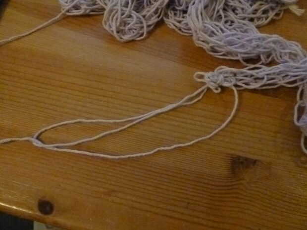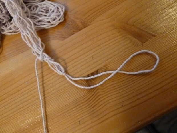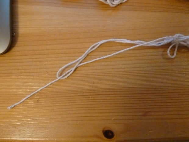 El último lazo y tire el resto del hilo a través de él. Nudo juntos.