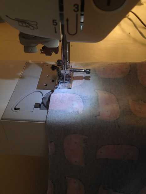4. Aplanar a las telas con la mano y coser el otro lado largo (no pin este lado otra vez, ya que soy perezoso :) y no es necesario cuando usted cose cuidadosamente.