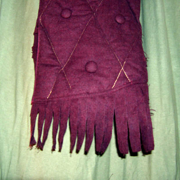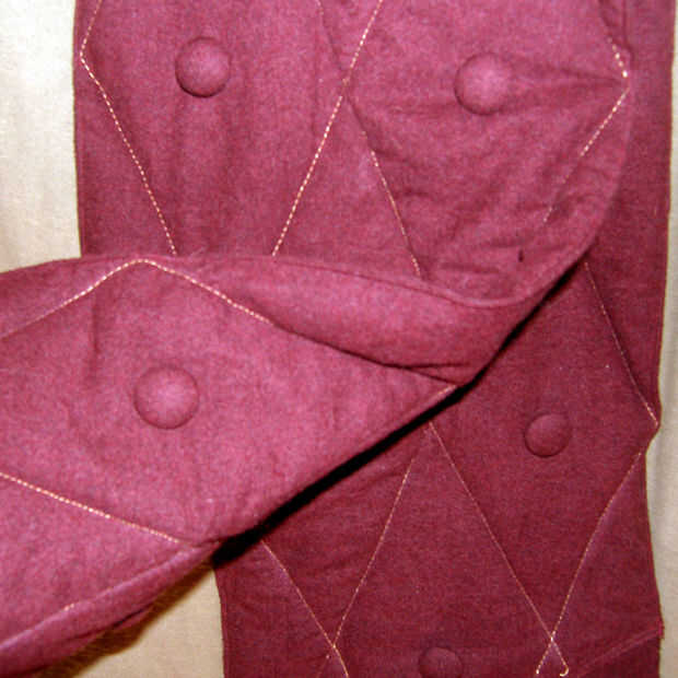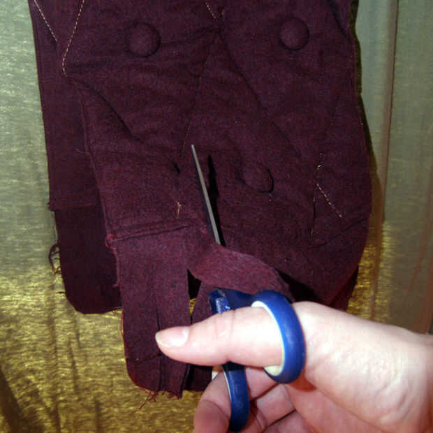 1. averiguar cuántos botones que necesita, que dependerá de si los pones en ambos lados. Para cada botón debe cortar un trozo circular de la tela. Hacer el círculo lo suficientemente grande como para envolver alrededor de los bordes de la bufanda. Fui para botones de ambos lados de la bufanda y terminó cubriendo 38 botones.