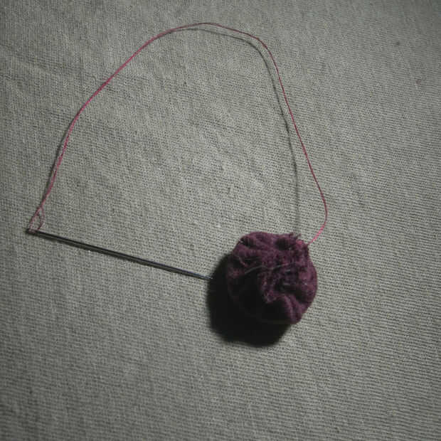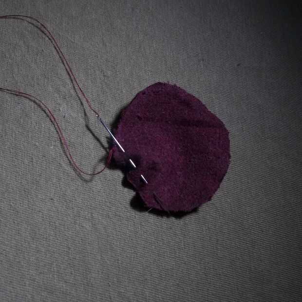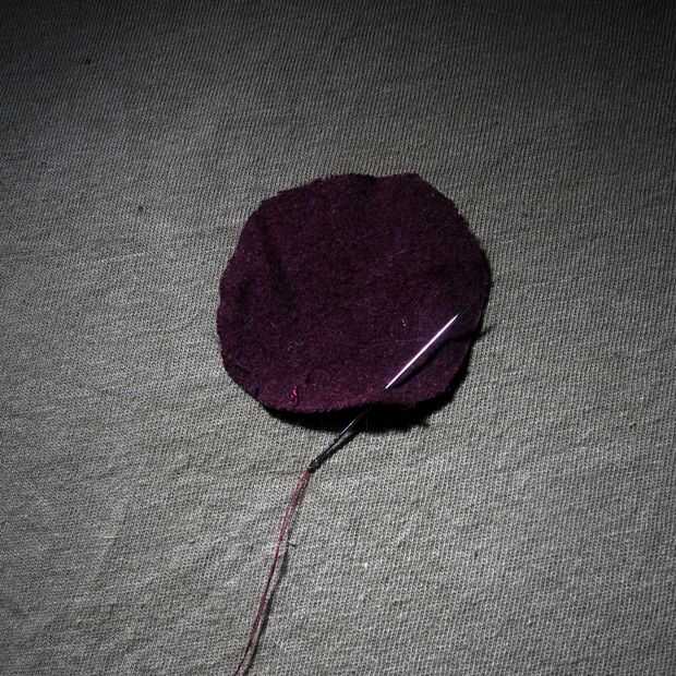 2 comenzar tejiendo la aguja alrededor del borde del círculo, alrededor de un cuarto de pulgada del borde. No quieres el hilo demasiado cerca del borde, pero no quieren ser capaces de ver en el otro lado.