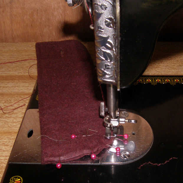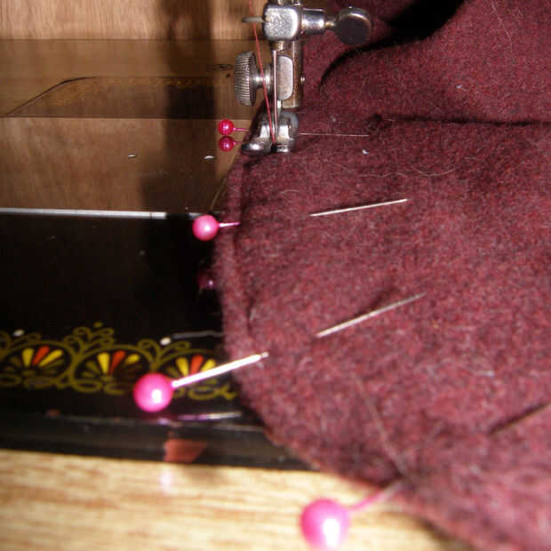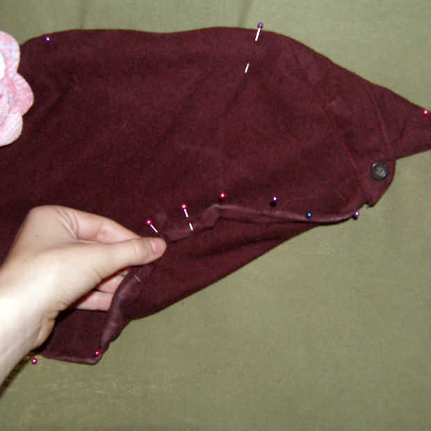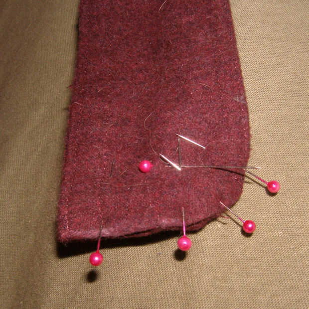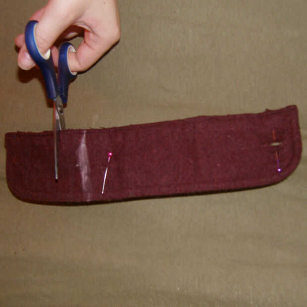 2. cortar dejar suficiente borde para meter dentro de la banda. Tuck y pin, luego volver a coser el borde del manguito.