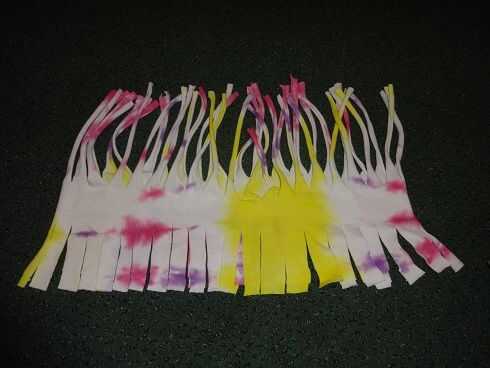 Con la tela restante cortar hasta la mitad para arriba similares a paso 3F.