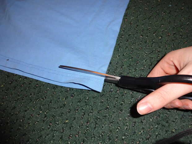 a partir de la parte inferior de la camisa número 1 cortado el dobladillo y deséchelo.
