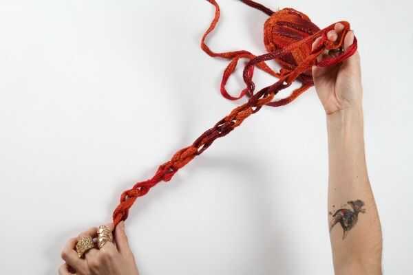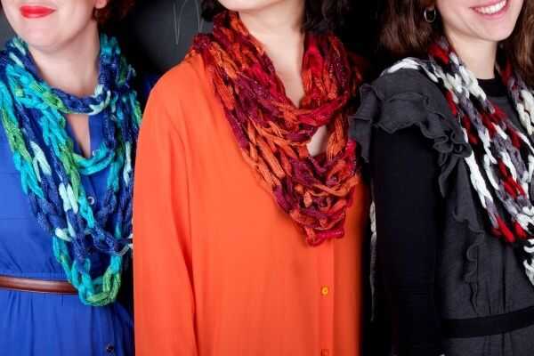No es realmente un pañuelo, no es realmente un collar; Esta es una divertida pieza de transición que puede usar mientras está todavía caliente, entonces puede envolver más estrictos y doble... triple... cuádruples hasta con múltiples variaciones de color e hilo como las gotas de la temperatura. Tan fácil y rápido de hacer (las únicas herramientas que necesitas son tus dos manos), usted puede lanzar uno con solamente una madeja de hilo!