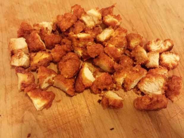 pre cocinar el pollo en el horno como por las instrucciones en el envase, esto hará que el pollo crujiente, de lo contrario se pone realmente empapado sobre el pan plano y no cocinar completamente.