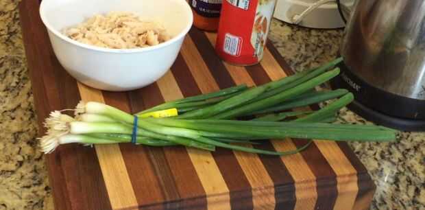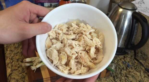 • 2 tazas (210 gramos) desmenuzado, cocido de pollo. (Yo usé filetes de pollo que guardo en el congelador)