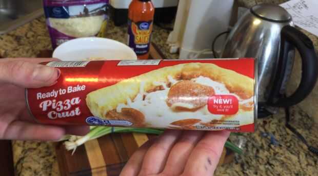 • 1 13,8 oz lata de masa de pizza, el tipo que hace una pizza cuadrada corteza cuando desenrolló.