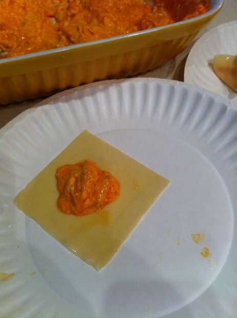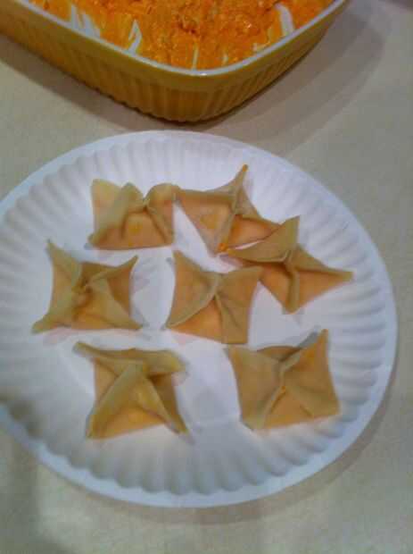 Humedecer los bordes de la envoltura con huevo y doblar dos esquinas opuestas juntas y pellízquelos para sellarlos.