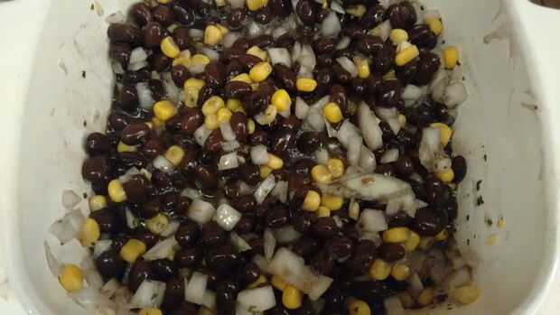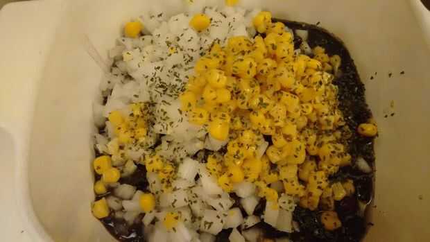 Mientras la carne se cocina, dados por otro 1/4 de taza de cebolla y mezclarlo junto con: