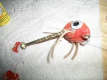 aburrido? pez? tengo una solución, hacer algunos señuelos Pesca! lo que usted necesita:-clip de papel-cinta (yo usé cinta aislante)-tijeras (algo para cortar la cinta)-pluma con una empuñadura de goma-gancho de pesca (que se muestra funciona mejor)Si