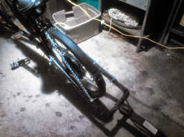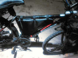 El remolque esté enganchado a la bicicleta por un sistema de enganche construido custom con cadena y tubo de PVC. El pvc hueco es grande para almacenar el engranaje adicional y puede configurarse para ser utilizado como un identificador de tipo de rickshaw encajonar de la falta de bici.