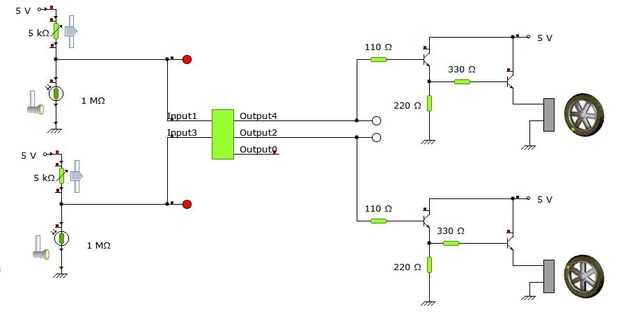 Si el LDR izquierdo tiene luz incidente, debe encenderse el motor DC adecuado al robot gire o mueva a la izquierda.