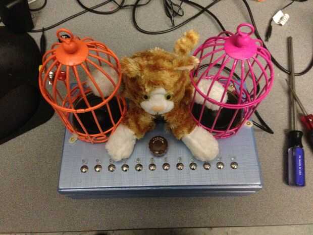 Todavía tenía el problema de los gatos de patas. Sobre todo con las jaulas en lugar, eran enormes. Observando la colocación de pies de gato, iniciado a las perillas de la imagen encima de ellos. Mando un tempo era un dado, y pensé que si tuviera otro pomo idéntico podría encontrar una función para él. Nunca puede tener demasiados botones. Todos que me haria falta son un par de macetas largas con que podría ir a través de pies de gato y sale en la parte superior. Les tengo en Radio Shack y había instalado, corte un agujero en pies de gato con una navaja. Apareció a través y utilicé la sierra globo apagado. Entonces saltaron algunos mandos rojo en la parte superior.