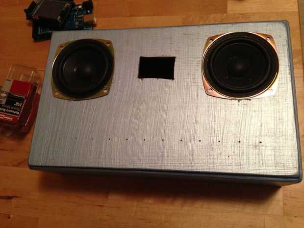 Fue un buen tamaño para caber entre los altavoces y me pareció una buena forma para construir. Había experimentado con encender el motor usando un puente H y sentía que podía hacer que funcione. Por lo que decidió.