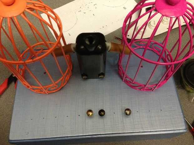 El siguiente paso fue decidir lo que quise utilizar para las llaves. El ½" tapas metálicas que había estado tratando antes de ahora parecía demasiado grande y un poco llano. Pensé que algún tipo de clavo decorativo con una cabeza grande funcionaría bien y podía puntea en. Encontré lo que buscaba con algunos clavos de tapicería, la clase que se utiliza para definir el cojín de una silla o un sofá. Hubo 3 diferentes acabados, y fueron sólo un dólar un pedazo, así que compré los 3 y había consultado a Michele. Nos decidimos por la plata, que emparejó la pintura azul bien. Con mi diseño de papel milimetrado, había perforado 12 agujeros equidistantes con la lezna. Yo les había aprovechado todo el pensamiento en y comenzó sobre la colocación de los LEDs sobre cada tecla.