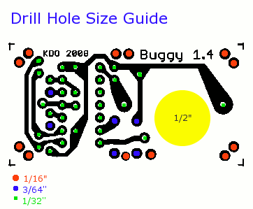 La Junta Directiva de perforación fue un poco un truco así. Dremel tiene un juego de broca taladro con brocas de 1/32 3/64" y 1/16". Hice un diagrama (abajo) para mostrar lo que cojín es perforado para que el tamaño. Use una máscara. No es recomendable respirar el polvo de fibra de vidrio. El orificio para el altavoz es ½". Hay pad hay como un agujero piloto.