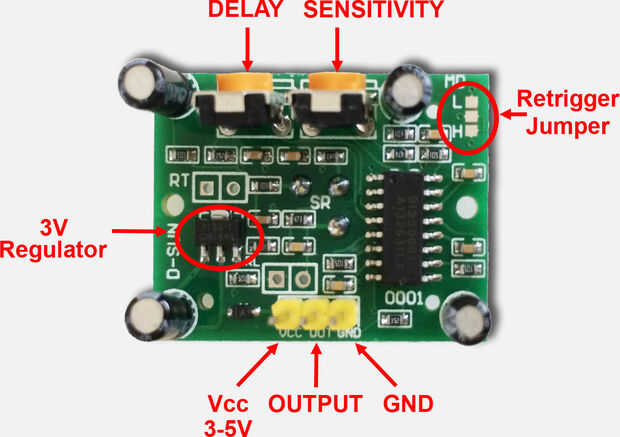 Tiene un Sensor de movimiento PIR que quieres utilizar con tu Arduino de 3,3 voltios o un ESP8266 (NodeMCU), o tal vez un Raspberry PI. Bien el Sensor de PIR chino estándar el-cheapo acepta 5 voltios en el VCC pin (realmente 5v a 20v) y no funcionan