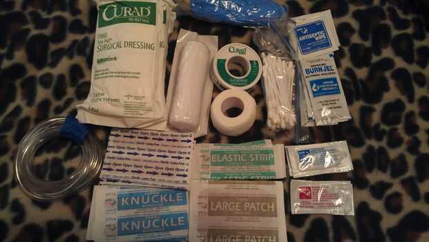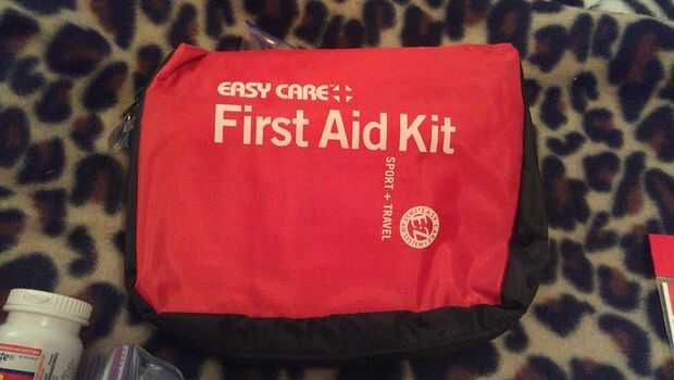 Recibí el kit de primeros auxilios de mi tienda de comestibles local más barato que el mundo de wally. No olvide cosas como aspirina, ibuprofeno o Tylenol. Los 3.