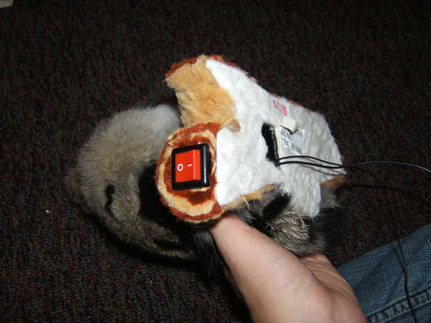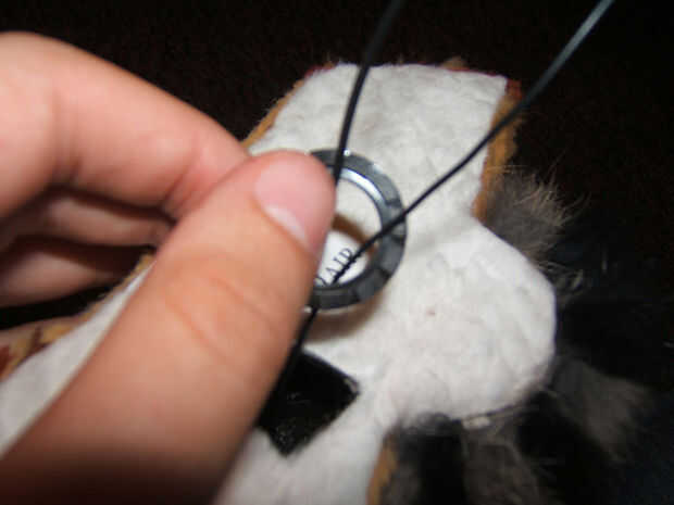 Después de eso, era una simple cuestión de desenroscar la abrazadera plástica negra de la parte posterior del interruptor, pesca los dos cables negros a través de la base del buho falso y empujar el interruptor en su lugar.