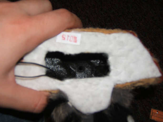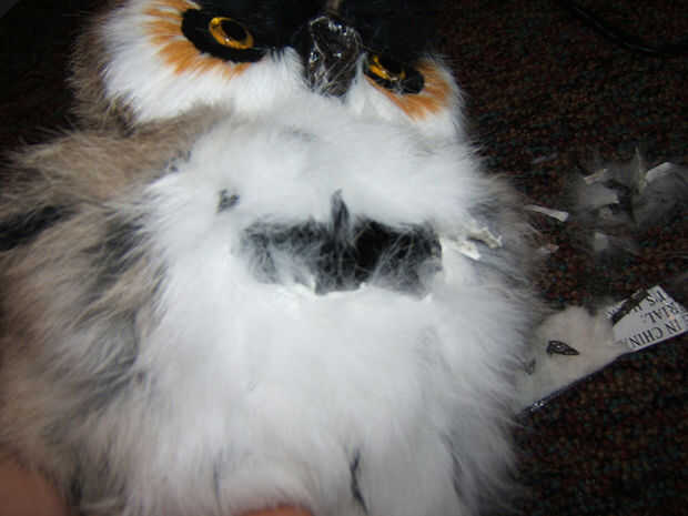 En segundo lugar, usted va a querer cortar un orificio cuadrado precisamente el tamaño de la muestra en el pecho delantero del buho. Esto es donde la muestra se va a colocar, así que mejor encajan.