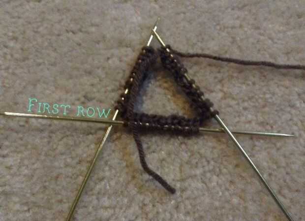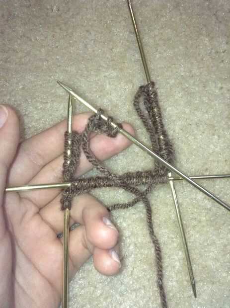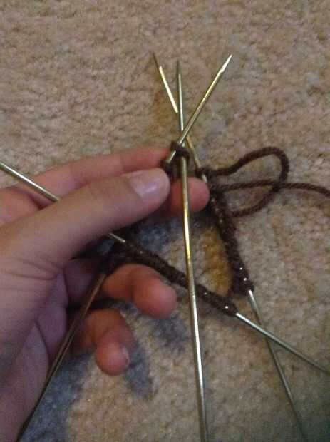 Encontrar la aguja que tiene la bola de hilo conectada a él. Inserte un cuarto DPN en la primera lazada de la aguja a la izquierda de la aguja de bola de hilo. (si tiene sentido: P)