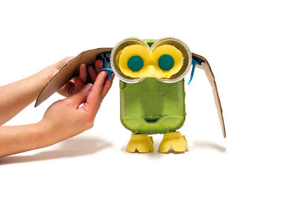 Colocar las alas a ambos lados del buho 7 y conectarlos con Makedo cerradura-bisagras y re clips.