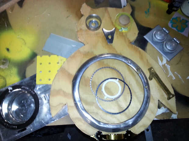 Varias piezas de hardware, metal, tapas de botellas, botones, perillas, accesorios de plomería, ect. Asaltaron garaje de mi esposo para la mayor parte de este, pero un buen lugar para encontrar diferentes formas materiales es restaurar el hábitat.