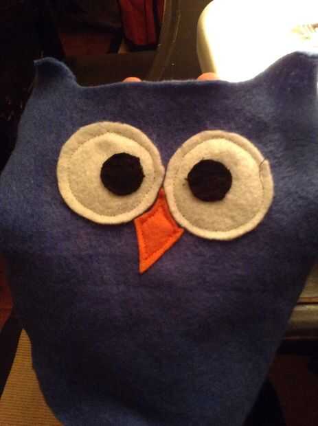 Tampoco puede coser las características de ahora (alas, ojos, etc...) o usted puede pegamento caliente les sobre más adelante. Yo se coser en para mi buho. Estoy cosido a mano de las pupilas a los ojos y usando la máquina de coser para el resto. Añadir las características en el lado opuesto que trazada sobre cuando se sujete al cuerpo. Recuerde que usted va necesitando con margen de costura, así que no pongas justo en el borde.