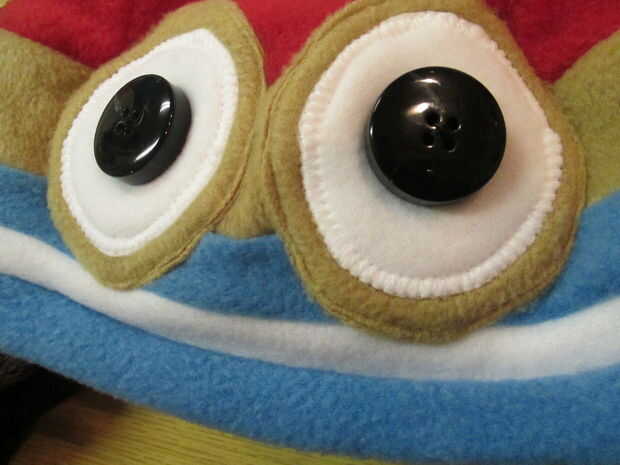 Cosí al sombrero con una puntada recta, muy cerca del borde. Cosí botones grandes puede así o simplemente usar fieltro.