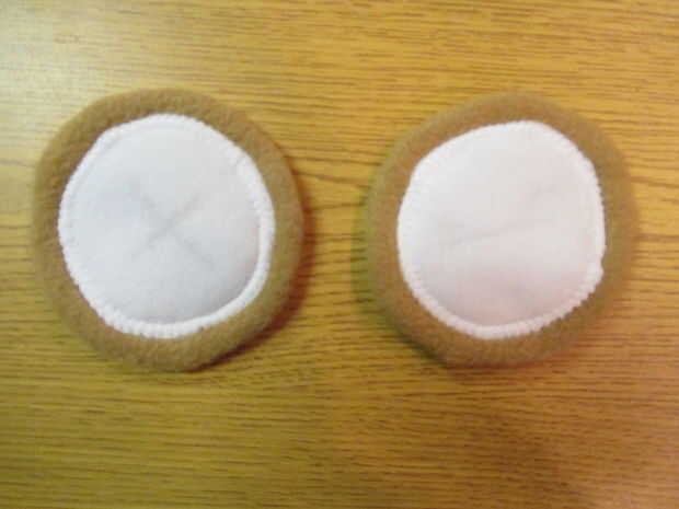 Coser, recortar y girar a la derecha hacia fuera. Coloque sobre el beige para ver si el tamaño se ve bien. Puede que necesite coser un círculo ligeramente más pequeño, o dejarlo como está si te gusta.