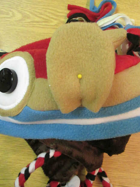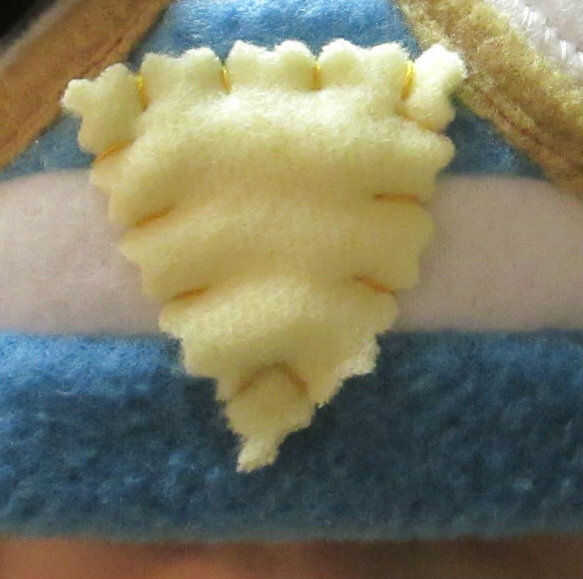No hay que olvidar la nariz! Dos capas del amarillo, cosida a mano en hilo dorado grueso.