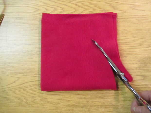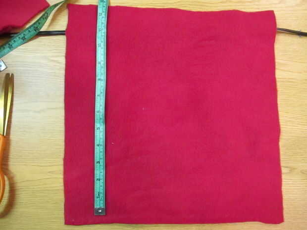 Dobla un cuadrado de 13" a la mitad, luego la mitad otra vez y cortar un cuarto círculo, para hacer un círculo de 12".