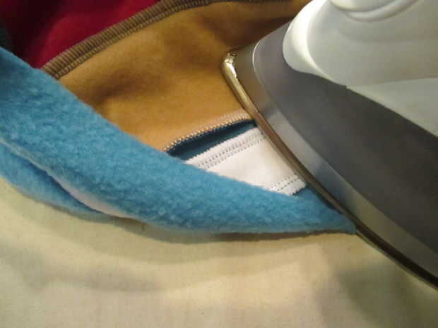 Reunidos los extremos y emparejado por las costuras posteriores y la capa de color beige por encima de él.