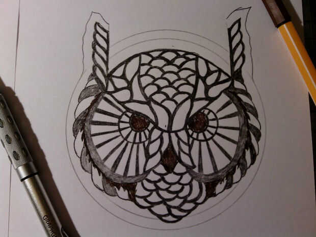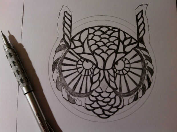 Así que quería algo fuera del círculo. Me imaginaba una cabeza, por ejemplo, gato, dragón o búho. Entonces descubrí el arte de Jessica Stokes y una cabeza de búho maravilloso y detallado. Aquí está la ilustración original impresionante. (Crédito: Jessica Rose Anne http://whatjessdrew.blogspot.hu/)