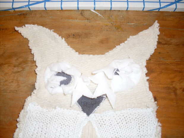 Colocar los pies dentro del pájaro, pin a los bordes, luego coser justo en el centro de cada pie. El área entre cada pie debe estar abierto.