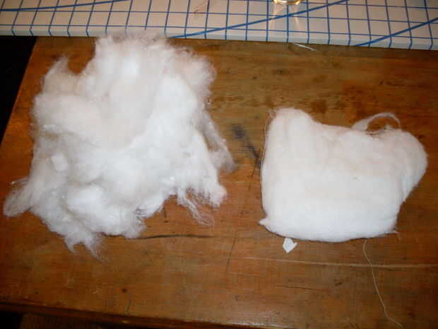 Tomar contacto con el relleno y comienza a tirar pequeños pedacitos de ella, como lo haría como si se tira un pedazo de algodón de azúcar de un palo. Seguir haciendo esto, y el relleno se ahueque las espalda para arriba.