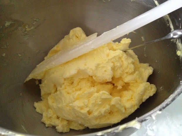 Añadir un poco de mantequilla en un tiempo y la esencia. Seguir batiendo hasta que esponje