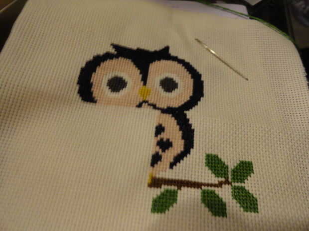 Rellenar el espacio dejado por el pico y el ojo izquierdo. No te olvides de las tres plazas en el ojo derecho!