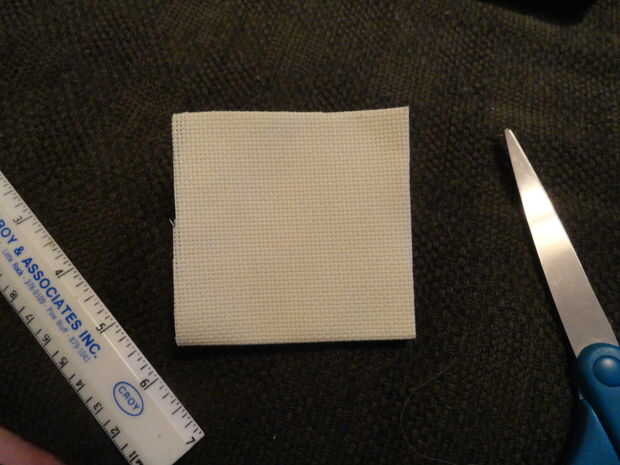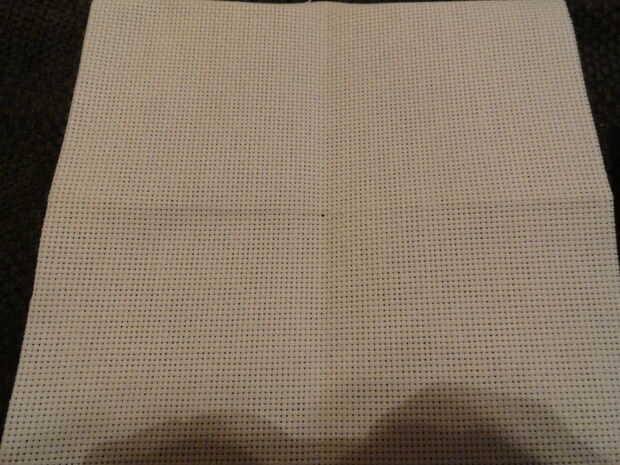 Doble su tela Aida dos veces. En primer lugar, usted será doble maneras largas estilo 'hot dog'. Luego, se pliega nuevamente para hacer una pequeña plaza. Desplegar a la tela y asegúrese de que puede ver arrugas en él.